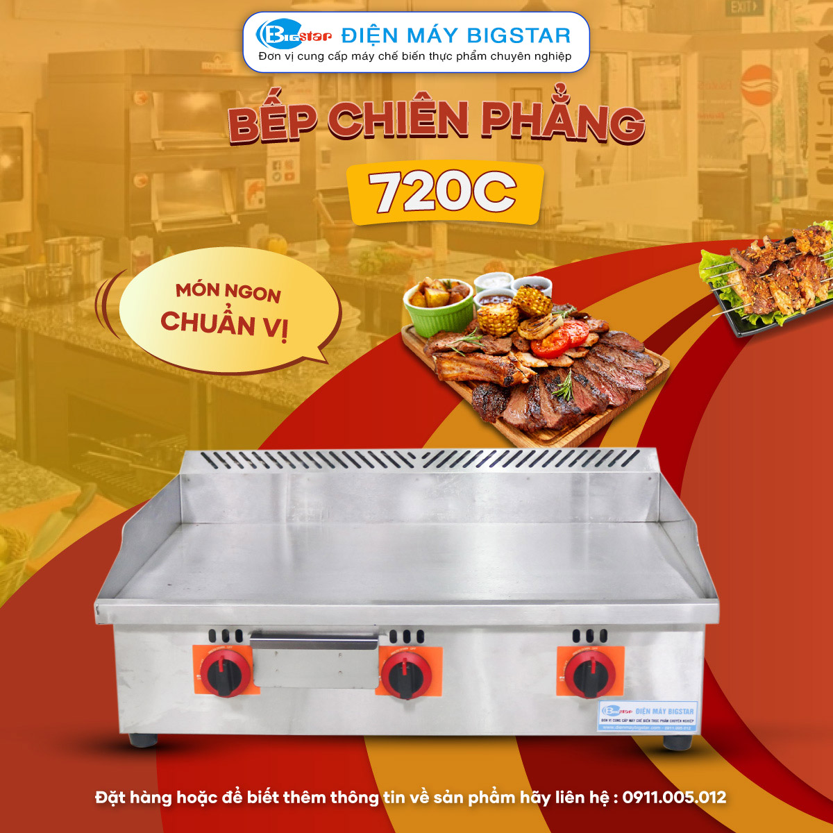 Bếp chiên rán mặt phẳng dùng gas 720C hiện đại, chất lượng cao, tiết kiệm thời gian