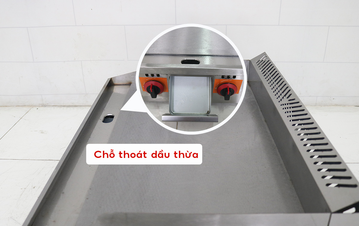 Rãnh dẫn mỡ thừa xuống khay chứa mỡ, khay chứa mỡ dễ dàng tháo lắp ra ngoài để vệ sinh.